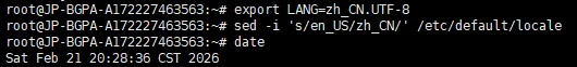 sed -i 's/en_US/zh_CN/' /etc/default/locale